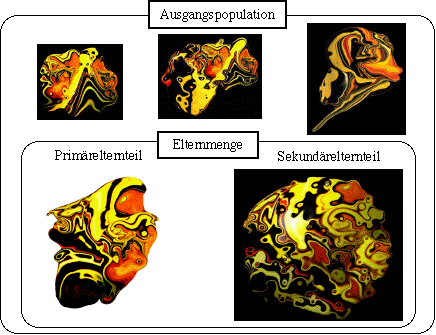 Having reached the aimed number of individuals the descendants are evaluated an the best(!) members the interim population are selected in respect to the selection criteria of the artist. Image 7) Post Processing