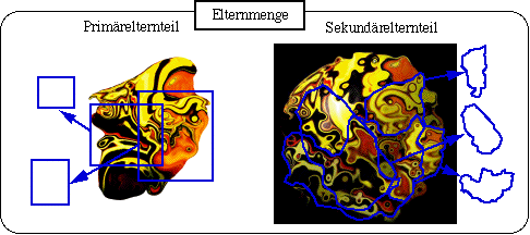 Within the first step of mutation the secondary parent part a mask is selected. With this mask a copy or a cutting operation is performed. Parallel a ROI is selected in the primary parent part, in which the part structure should be inserted. Image 2) RIO and MasksImage 3) Selection of a RIO a and a mask