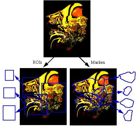 Hence the offspring can be chosen in the further evolution as a secondary parent part it is necessary that one or more masks are generated. ROIs have to be generated as well since the descendant can act as primary parent part further on as well. Image 8) Determination of ROIs and Masks