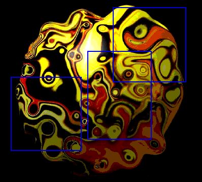 | Beispiel 1: Verzerrung | Im Rahmen der ungeschlechtlichen Reproduktion der Metamorphosenbilder soll zunächst mit der Verzerrung die am häufigsten verwendete Vorgehensweise beschrieben werden. Im zweiten Beispiel wird die Verzerrungs-Operation zusammen mit anderen Operationen, wie dem Ausschneiden und RST (Rotation-Skalierung-Translation)-Transformationen verwendet, um eine ungeschlechtliche Reproduktion zurchzuführen. |